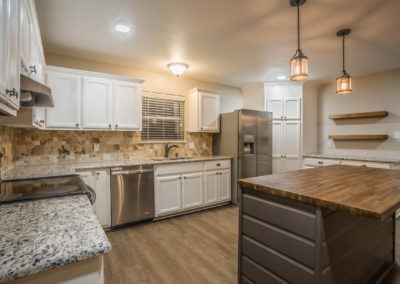 We have completed exterior painting and added a workshop/barn to the back yard. Interior painting is complete. We have installed the granite countertops recessed lighting and can lighting in kitchen and dining area. In the bathrooms we have installed granite countertops and new tile along with vanity and overhead lighting fixtures.