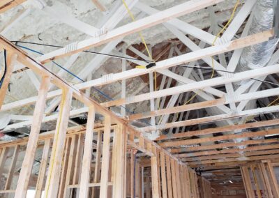 To ensure that every bit of smoke and water damage was repaired we had to take this brand new home down to its stud and build up again from scratch. Making sure no mold results from water damage and that plumbing and electrical is replaced or repaired to its original – or better – state is of utmost importance.